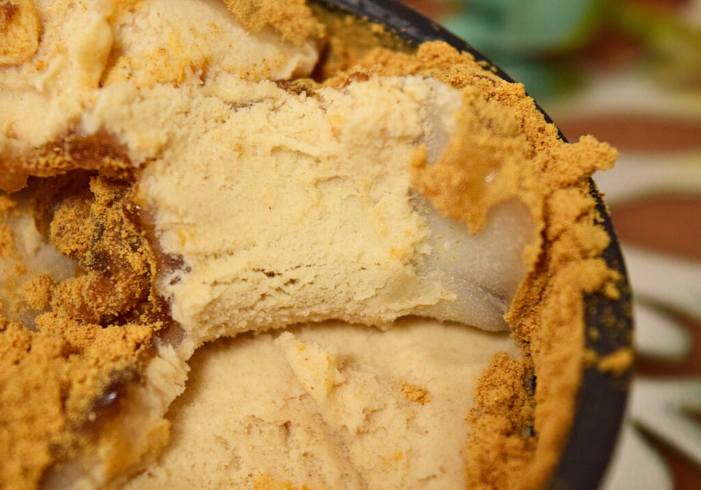 一気にスプーンですくってみましたが、おもちが予想以上にもっちもち!雪見だいふく以上のもちもち度にびっくり。沖縄県産の黒糖を使用したのだという、上品な甘みの黒みつときなこ、おもちにきなこアイスはやっぱり定番。