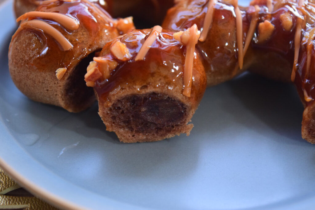 生地はポン・デ・ショコラとほぼ同じ。全体的に深みのある色合いですね。ショコラが練り込まれている生地で「大人っぽさ」をかもしだしているのかもしれません。キャラメルソースが手につきやすいの注意を!