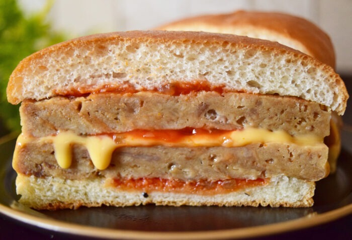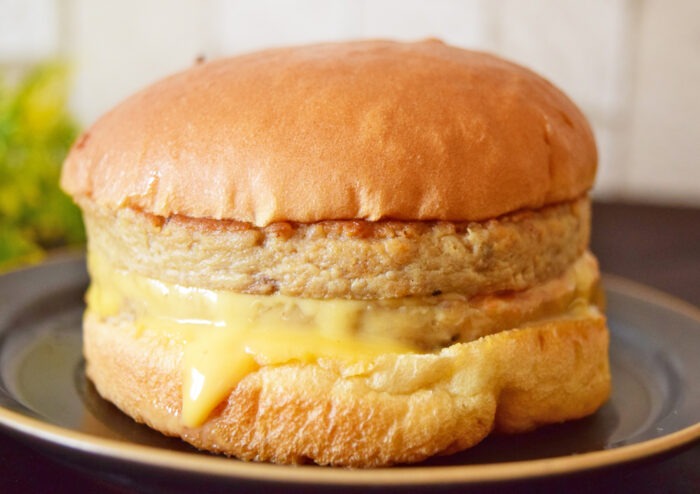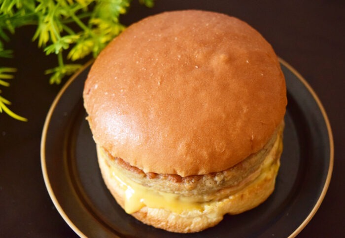 パッケージから取り出してみました。温めたため脇からチーズがドロッとはみ出ています。カリッと焼けたバンズも良い感じ。食欲がそそられるビジュアルですね。