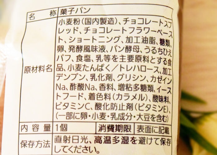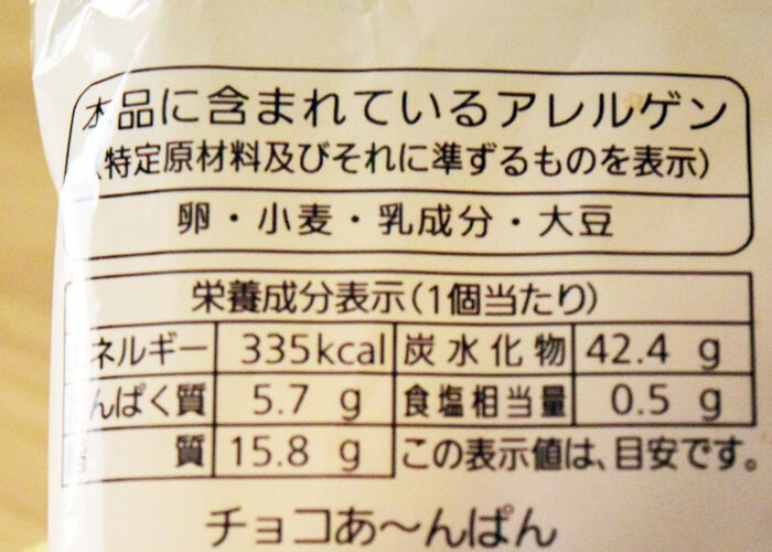 1個当たり335kcal・炭水化物は42.4g。ちなみにチョコあ~んぱんオリジナルの1箱当たりは199kcalなので、オリジナル1箱食べるよりもカロリーが高い…