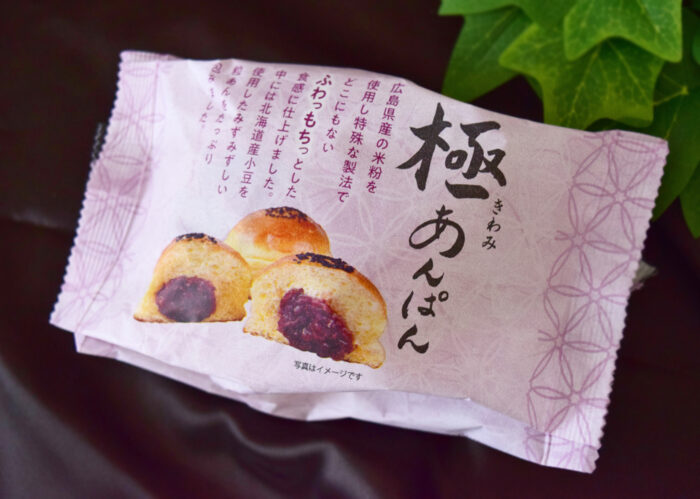 ピンク色の袋に入った極あんぱん。北海道産小豆を使用したみずみずしいあんこが米粉生地の中に入っているそうです。
