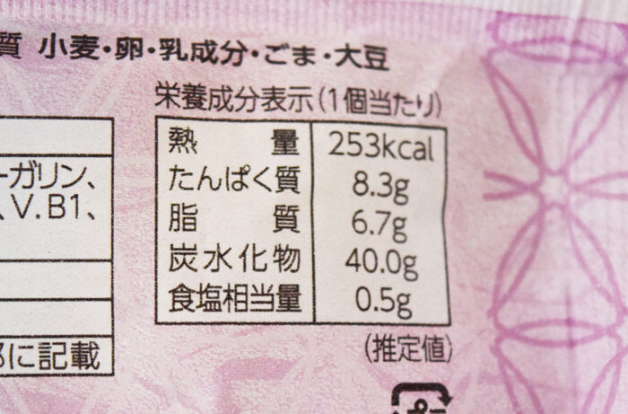 1個当たり253kcal。炭水化物は40gでした。
