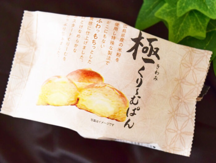こちらは白色の袋に入った極くりーむぱん。ふわふわの生地の中に八天堂自慢のカスタードクリームがふんだんに入っています。