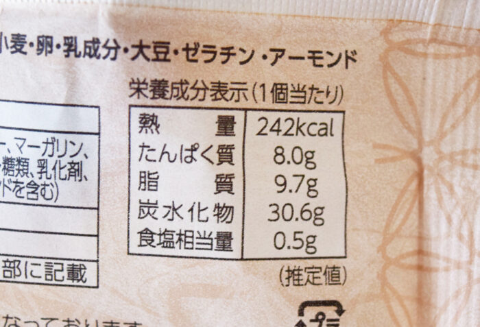 1個当たり242kcal。炭水化物は30gでした。