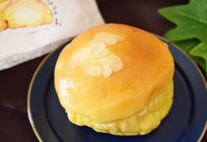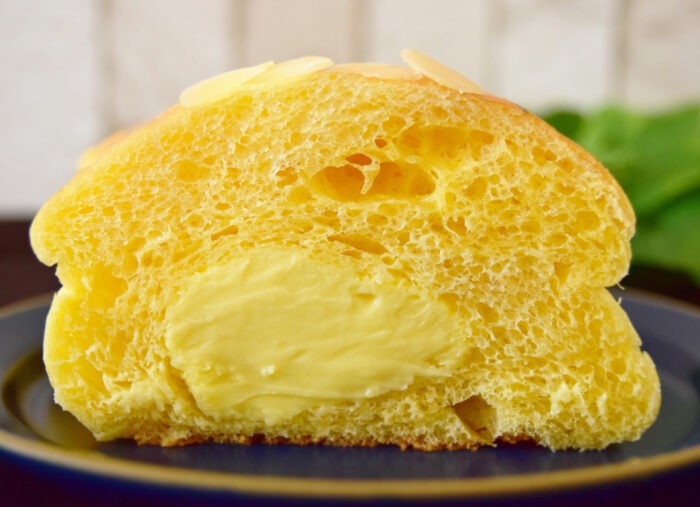 次に極くりーむぱんを食べてみましょう。上には胡麻ではなくアーモンドがまぶされています。こちらも残念ながら形崩れが……。