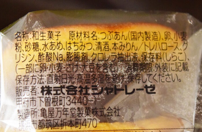 原材料はシンプル。素材の味を生かしていそうです。製造所は亀屋万年堂。シャトレーゼの自社工場ではないんですね。