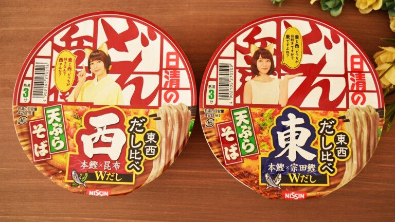 今回は「日清のどん兵衛 天ぷらそば だし比べ (東)」と「日清のどん兵衛 天ぷらそば だし比べ (西)」を買ってきました。