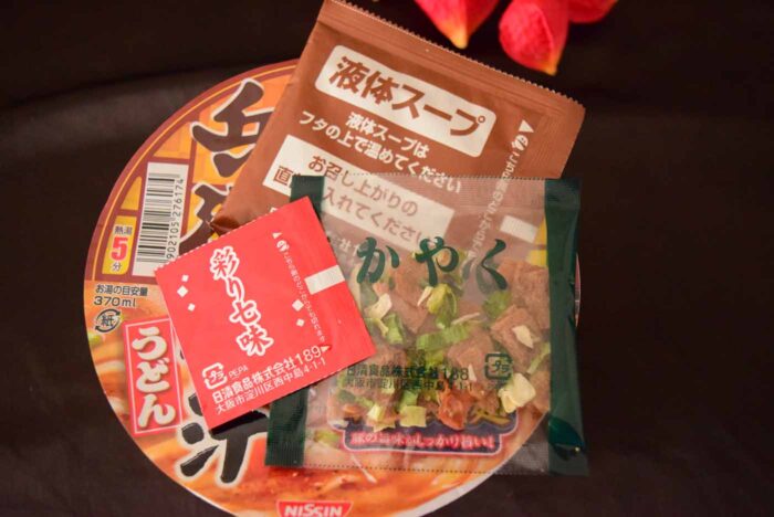 後入れ液体スープ、七味、かやく付き。