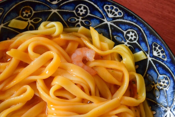 完成品はこちら。もちもちパスタ麺が美味しそうです。