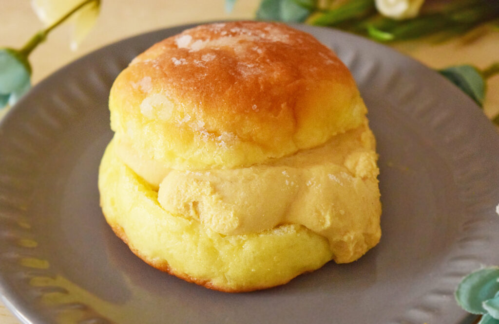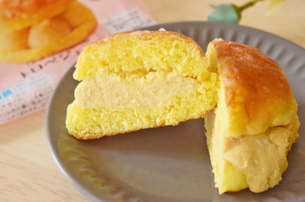 ファミリーマートのトロペジェンヌもブリオッシュ生地にカスタードクリームと発酵バターを配合したクリームを挟んでいます。早速、どのようなスイーツなのが実食してみました。