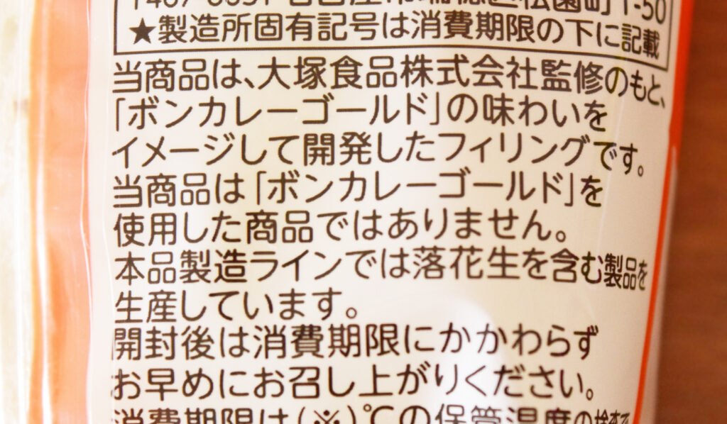 ボンカレーゴールド中辛をイメージしたスナックサンドで、2021年7月に発売時よりもカレーフィリングが10%増量したのだとか。
