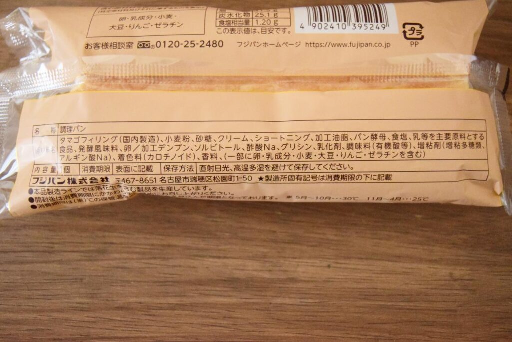 原材料にはたまごフィリング・小麦粉・砂糖・クリーム・ショートニング・加工油脂・パン酵母・食塩・乳等を主要原料とする食品・発酵風味料・卵が使用されています。