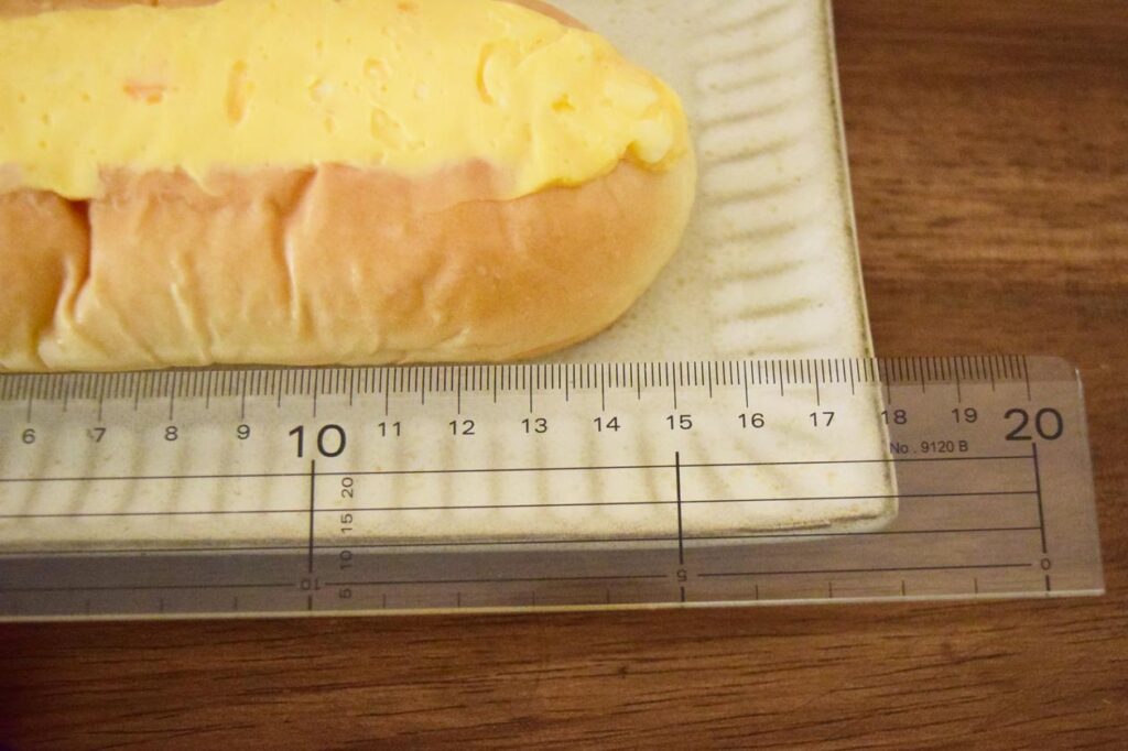 長さは15cm。ごく平均的なサイズのコッペパンです。