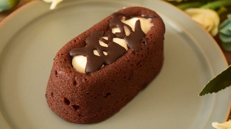 ガトーショコラってこんな感じだったっけ?と初見の人ならそう感じるはず。チョコレート生地の部分を手に取りながら食べられるスイーツ。ガトーショコラなのに、スプーンやフォークが不要!テレワーク中のながら食べスイーツとしてもおすすめです。