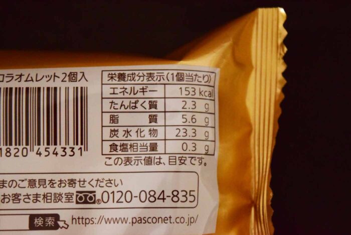 最後に紹介するのがショコラオムレットです。こちらは1パック2個入りでした。