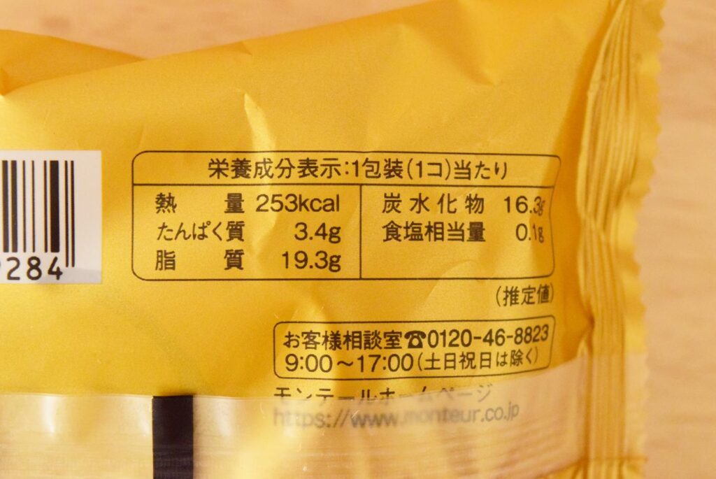 1個当たり253kcal。炭水化物は16.3gで資質は19.3g。
