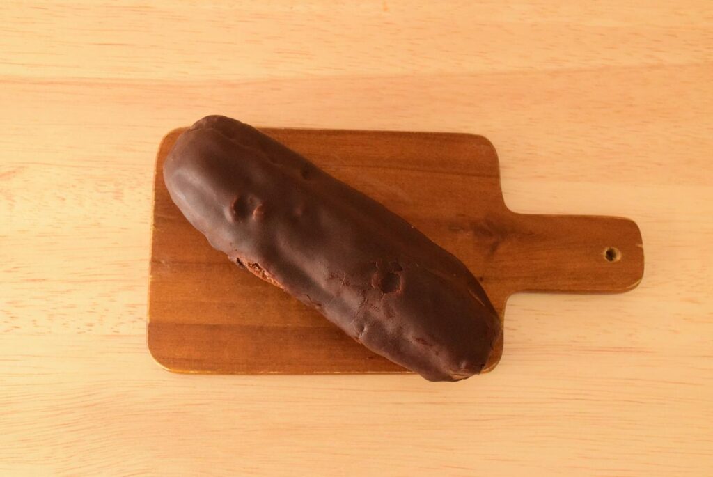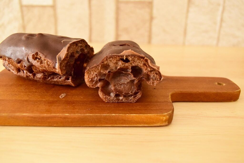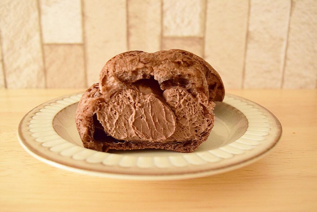 こちらもココアが生地に練り込まれています。見た目はチョコクリームがさほど入っていないように見えましたが、食べてみるとぎっしり詰まっていて、満足度は高めです。全体的にビターな味わいで、口に入れた瞬間のみ甘い香りが。シュークリームよりもビターなのでこちらの方が大人の味わいといった印象です。