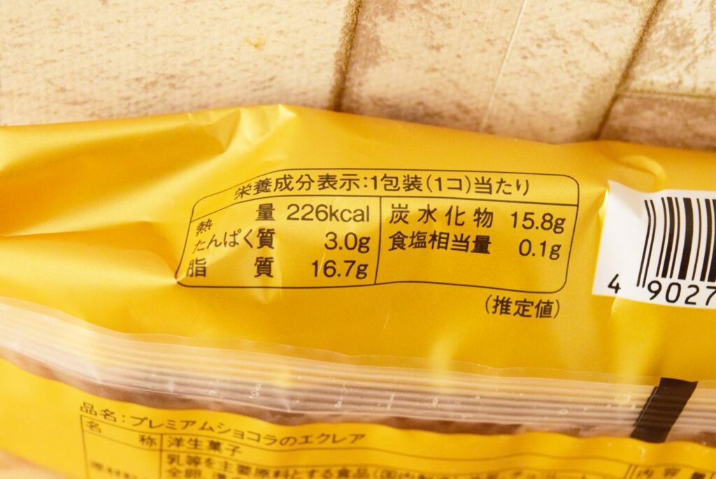 1個当たり226kcal。炭水化物は15.8gで脂質は16.7g。