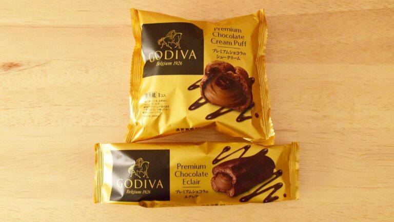 公式宣伝によると「ゴディバ監修商品専用に開発したガナッシュとベルギー産 チョコレートを使用したショコラペーストをブレンドしたショコラ クリームをエクレア生地に詰め、チョコを上掛けしました。」とのことです。
