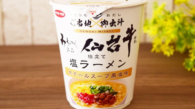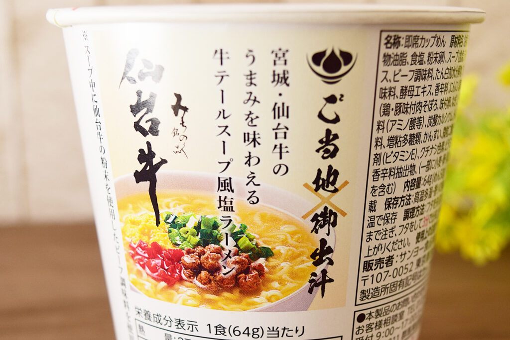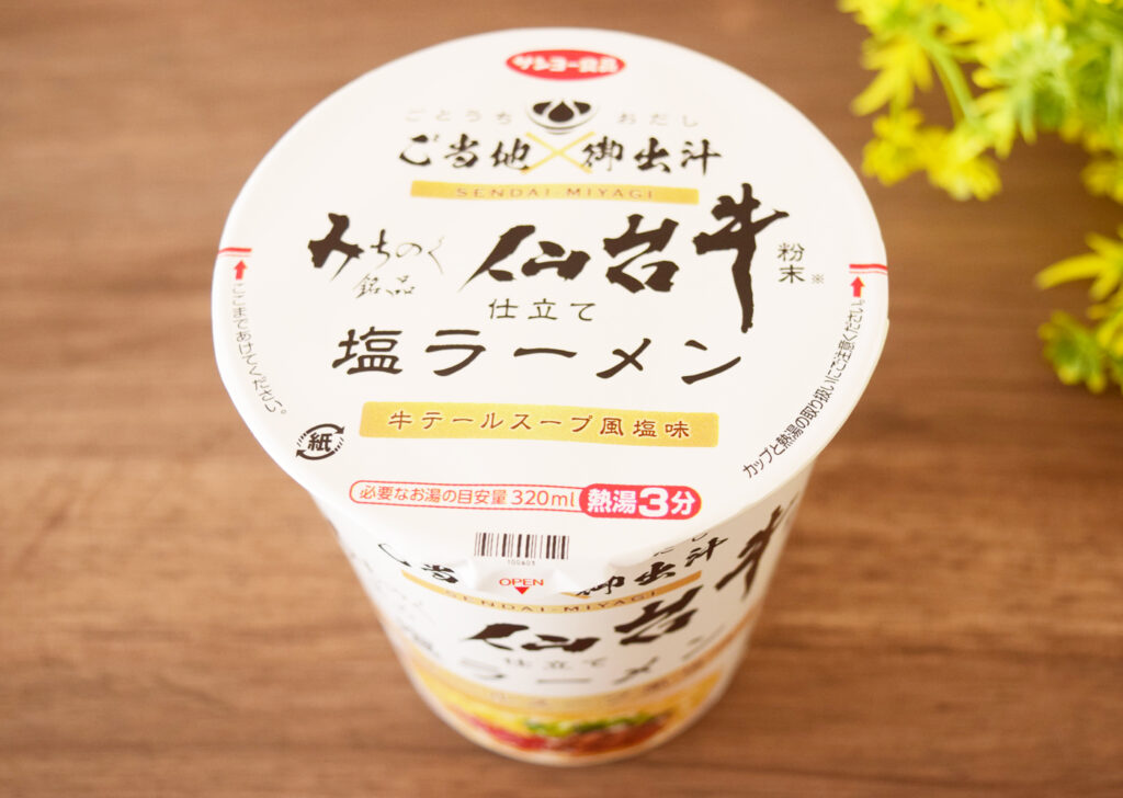 今回は2022年3月にサンヨー食品から発売された「ご当地×御出汁 仙台牛粉末仕立て 塩ラーメン」212円(税込)を実食してみました。