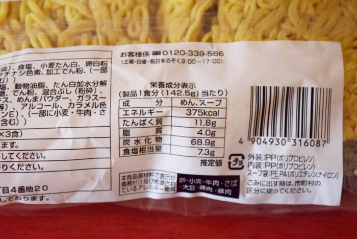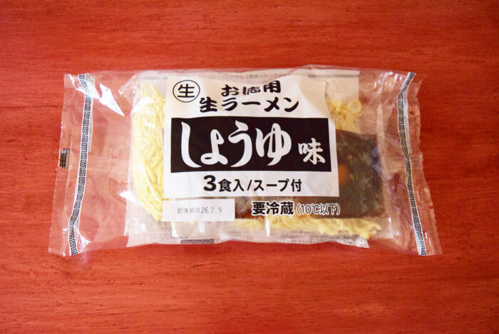 今回購入した「お徳用生ラーメン しょうゆ味3食入」は1袋148円(税抜)と3食入りなのに150円以下という破格の安さ。筆者は以前食べたことありますが、不味くはないですけど安い鶏ガラしょゆスープといった味わいです。