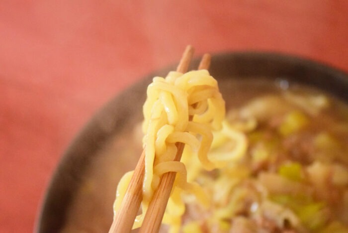 麺は1本あたりが短いですが、コシが効いていて非常に美味しいです。業務スーパーの激安ラーメンはスープはいまいちですが、麺は結構本格的でおすすめです。