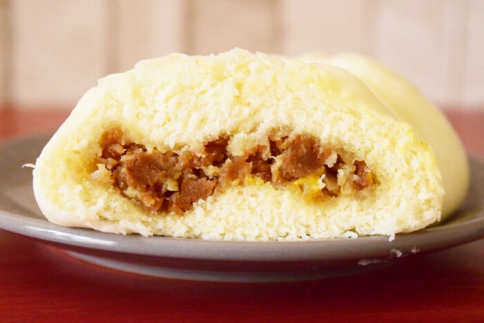 見た目は普通の肉まん。触ってみた感じはパン生地が分厚く結構形がしっかりしています。