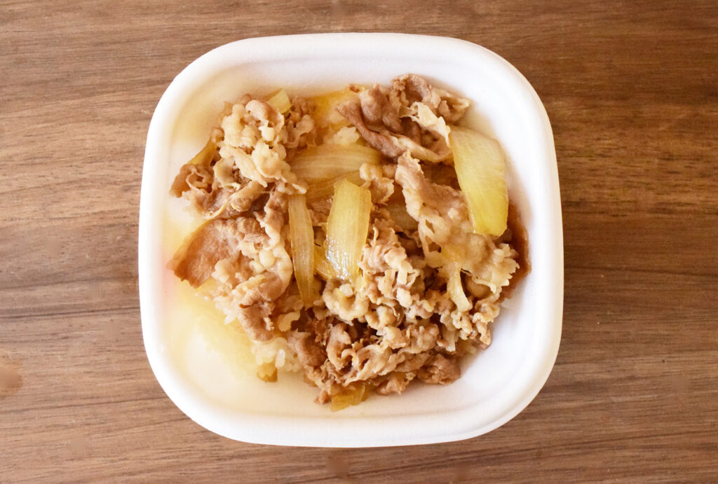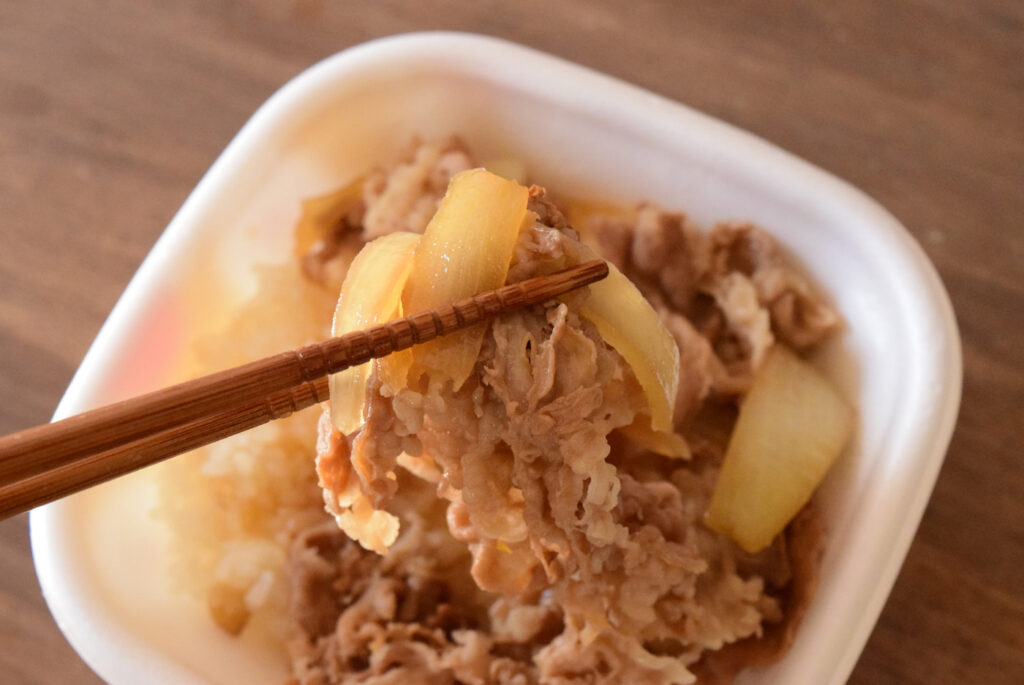 味は濃い目で醤油が効いています。結構がっつりした味付けで玉ねぎにも染み込んでいますね。ちなみに吉野家は各店舗によって味が異なるので、今回は2020年の時と同じ店舗で購入しました。2020年の時より味が濃く、3社の中で一番出汁がしみ込んでいます。
