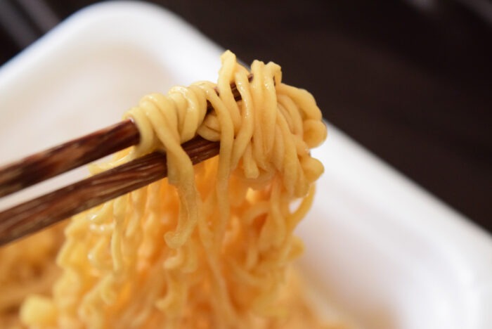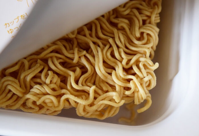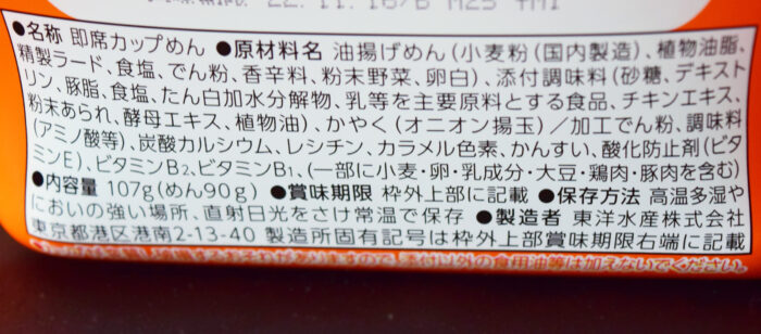 原材料については特段、変わったところがないですね。ハッピーターンは入っていません。内容量は107gでそのうち麺は90g。