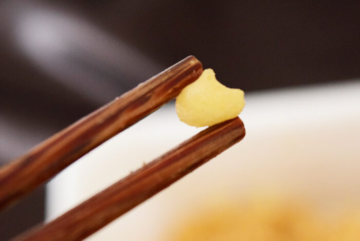 まさにハッピーターンの味。ジャンキーです。ちょっと濃いめですが、ハッピーターンを麺にしたような感じがして面白いです。麺は少しねっちょりしています。ここに本物のハッピーターンを砕いて入れたらさらに旨味がアップしそう!