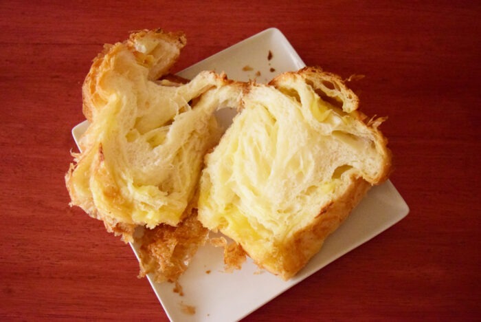 しっとりしたパン生地とチーズが合わさり非常に美味しいです。デニッシュ生地とチーズは相性が抜群ですね。特に生地が甘いとか味はさほどついていませんが、パン生地の香ばしい味わいと濃厚なチーズだけで十分おいしく食べることができます。デニッシュ生地のパンはたくさん食べてきましたが、トップレベルに美味しいパンでしたね。