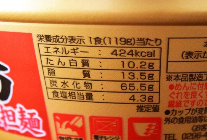 1食(119g)あたり424kcal。食塩相当量は4.3gです。