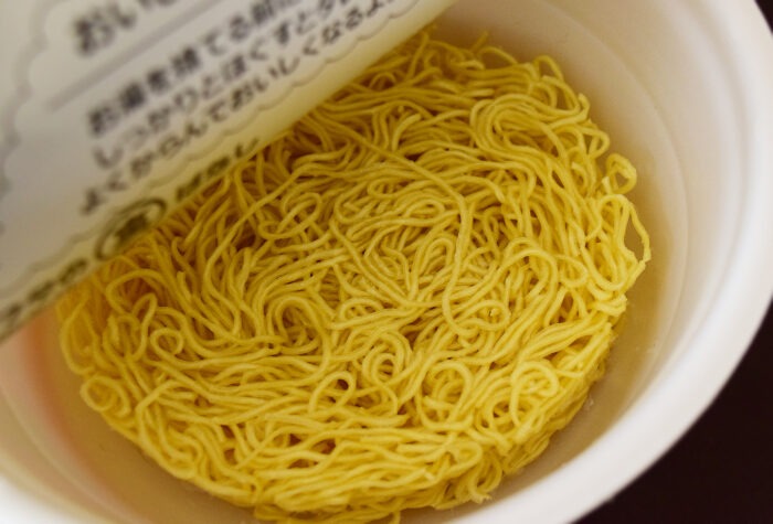 麺は中太麺とのことですが、見た目は細麺に近い印象です。調理時間は熱湯で4分かかります。