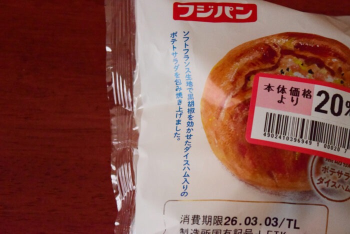 説明書きには「ソフトフランス生地で黒胡椒を効かせたダイスハム入りのポテトサラダを包み焼き上げました」と書かれています。
