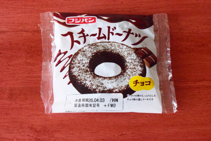 2026年4月にスーパーで「フジパン スチームドーナツ チョコ」を新商品コーナーで販売しているのを発見。