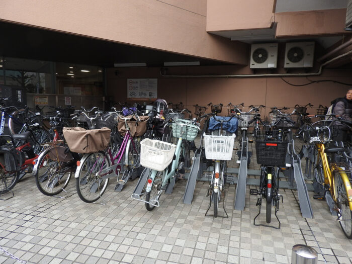 有料駐輪場もあります。2時間までは無料ですがそれ以降は4時間おきに200円。平日でもお昼時は結構停まっていて、時々満車になっていることがあります。