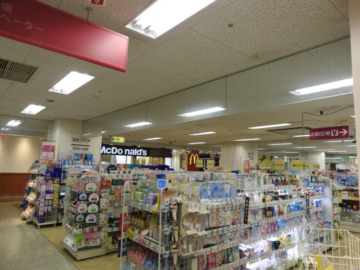 駅から直通で入れる2階はマクドナルドやドトールなどの専門店だけでなく、薬など日用品も取り扱っています。イオン北小金は主に1階と専門店がある2階がメインですね。