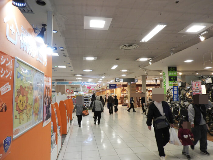 階数の移動はエスカレーター・エレベーター・階段を使います。イオンノア店の中心は吹き抜けになっていて、1階部分ではイベントを行っていることが多いです。筆者が行ったときはイベントはやっていませんでしたが、様々な自転車を販売していました。