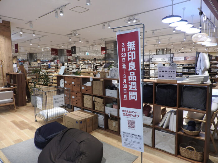 1階フロアのメインともいえるのが、広い無印良品店です。あまり見たことがないほど広いスペースを取っている店舗は他では目にしたことない品を多数置いています。