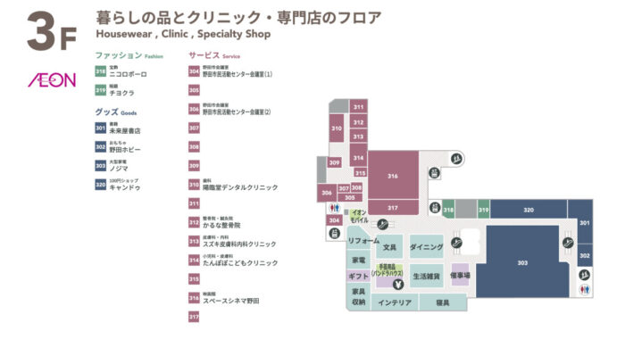 また、小規模ですが映画館も3階にはあります。そのほかには小児科のクリニック・歯医者などもあり子供関係においても充実しているのが特徴です。