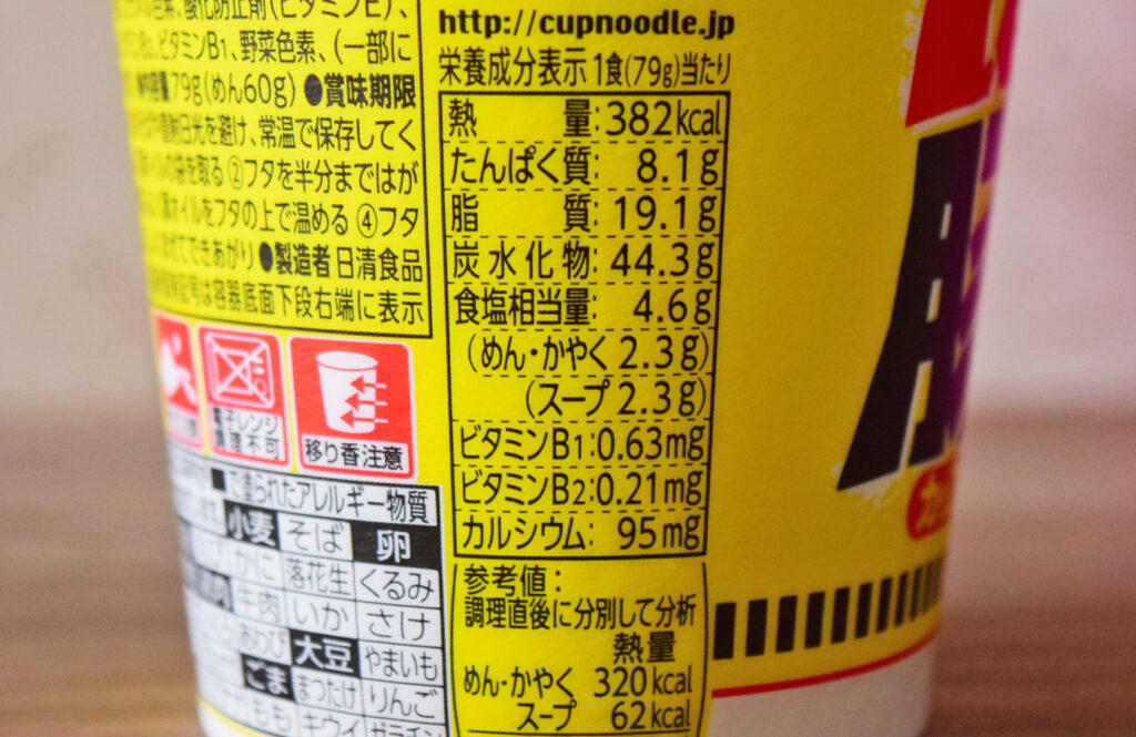 1食あたり382kcal。食塩相当量は4.6g。炭水化物は44.3gです。カロリーが思ったより低くて驚きました。