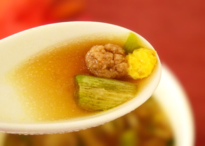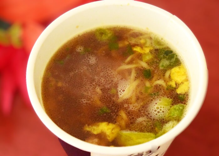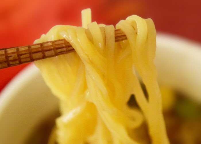 ツルっとした麺は喉ごしが良く、すっきり系スープに対してはまずまずあっていたと思います。筆者としては丸麺でもう少しもっちりさせた方がスープを吸い込んでよかった気がしますが…あまりにもツルっとしているので、こんにゃく麺や米麺に近い食感になってしまっているんですよね。