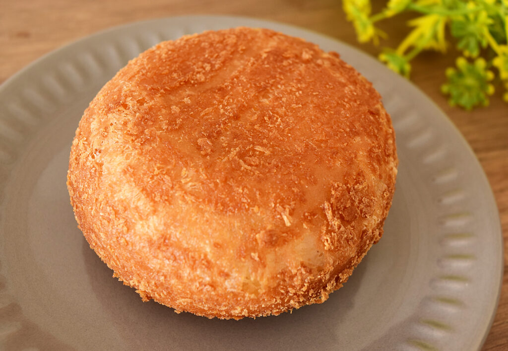 お店で揚げたカレーパンからみていきます。見た目の特徴としてはパン粉が細かく、全体的にふっくらしています。そして、表面がやや固め。
