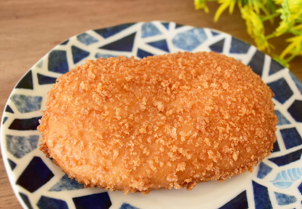 一方、コクと旨みのカレーパンはパン粉が荒く大きいのが特徴です。ふっくらしておらず平べったい。そのままの状態ではパン生地がふにゃっとしていて柔らかめですが、オーブントースターで軽く焼くと表面がカリッとしました。