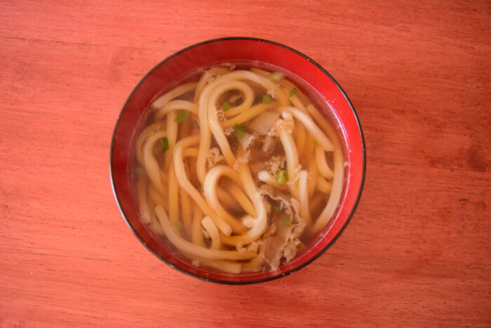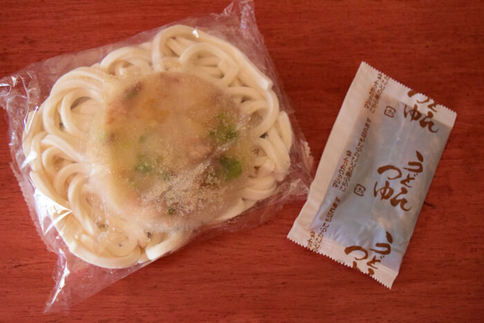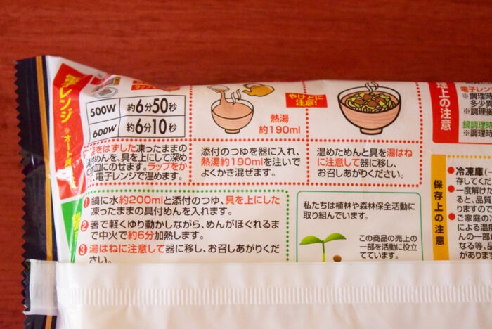 うどんつゆは一緒に冷凍されているため、このままだと凍ったままです。あらかじめ熱湯で解凍することをおすすめします。