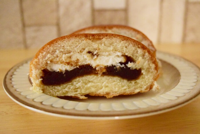なかにはコーヒーあんとホイップクリームが入っています。ホイップクリームの量が少なく、甘さは控えめです。そのためあまり強調していませんでした。コーヒーあんも甘さは控えめ。そして、コーヒーの香りと味わいが強いです。若干の苦みを感じるほどです。