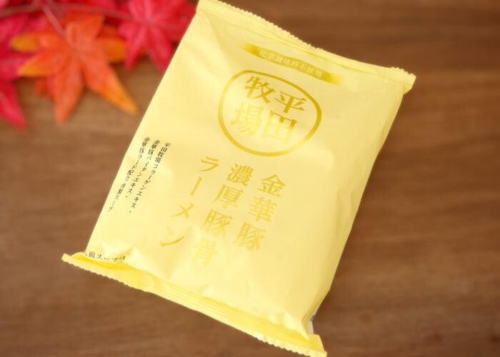 続いて紹介するのが「平田牧場金華豚 濃厚豚骨ラーメン」です。こちらは醤油とは対象に白のパッケージになっています。