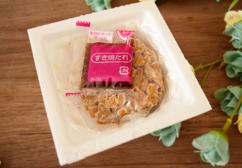 パックの中には納豆とすき焼きのたれが入っています。