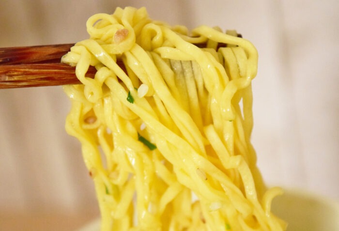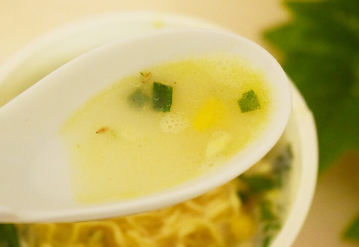 まずはスープから。あっさりとした牛スープで白湯系や牛の旨みというよりか、ペッパーやガーリックの味が強めです。クセがなく、あっさりしたスープなので麺だけでなく、ご飯や野菜にもあいそう。
