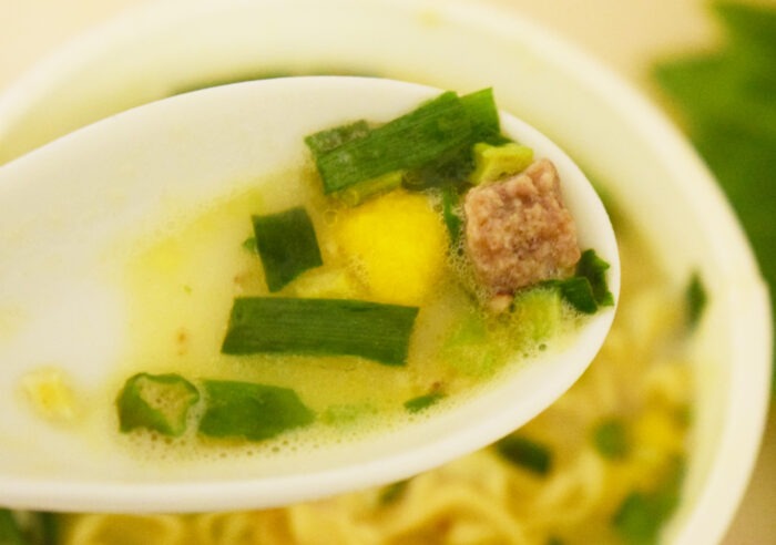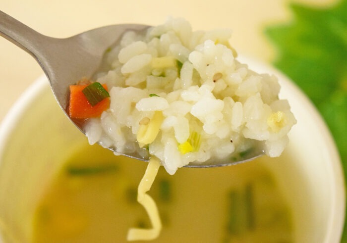 次に麺を食べてみましょう。カップヌードル独特の香りがする麺は通常のカップヌードルとほとんど変わらず。カップヌードルの麺はのびにくいのが特徴で、撮影などで時間がかかっても、麺がのびることがほとんどありませんでした。